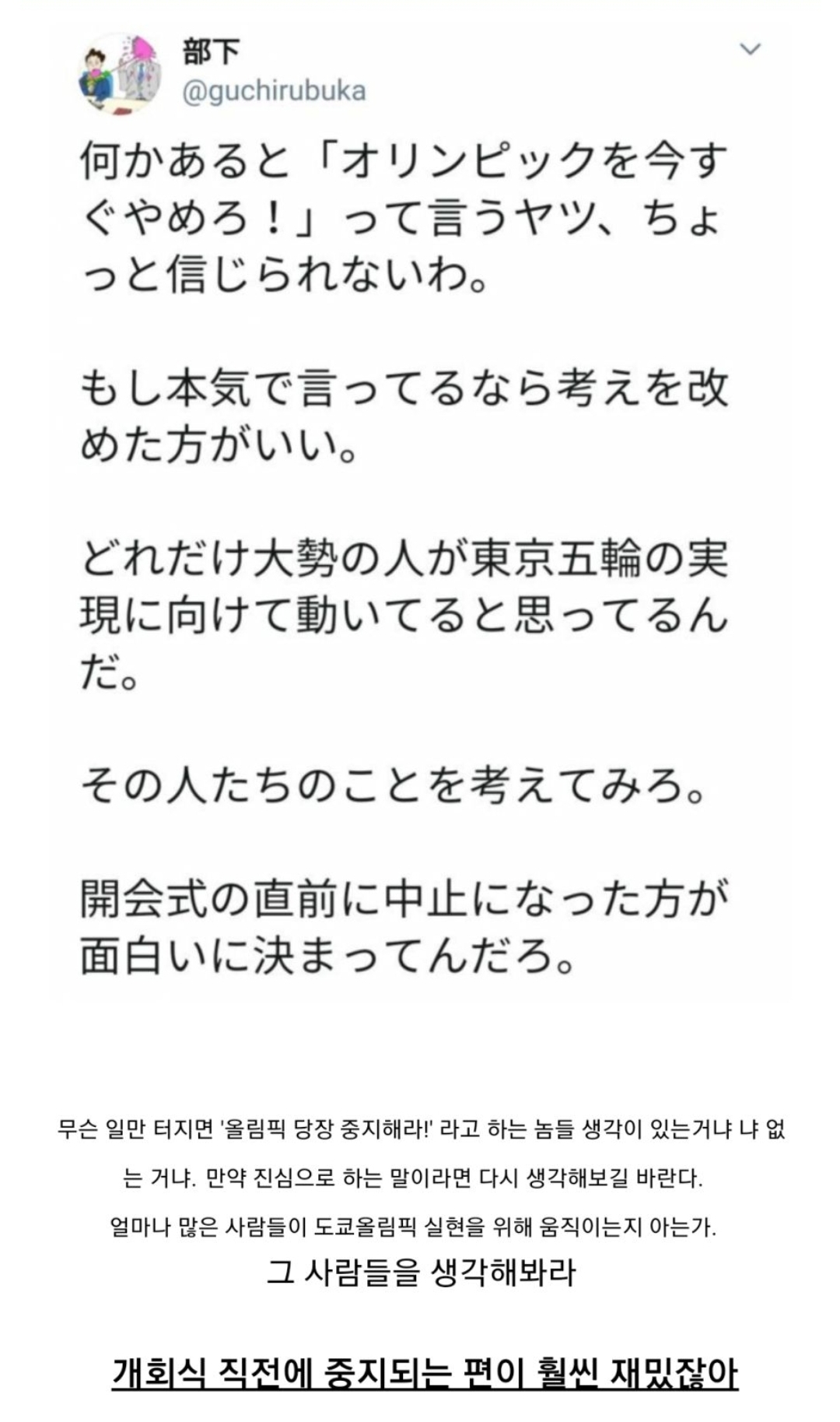 도쿄올림픽 중지글에 대한 일본인의 일침 본문