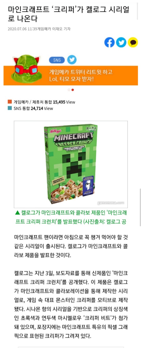 파맛 첵스를 이은 크리퍼 시리얼 본문