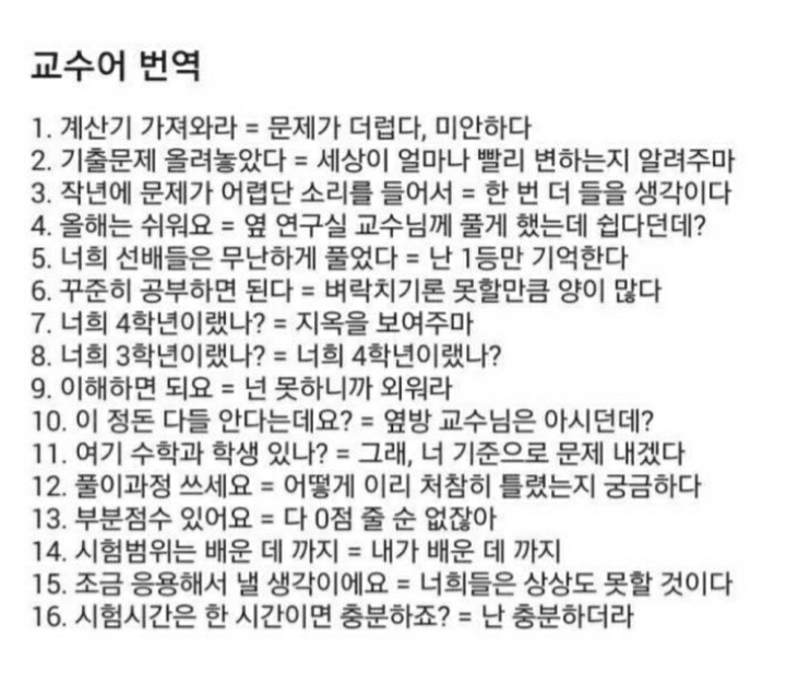 시험기간에 유용한 교수님 언어 번역 본문