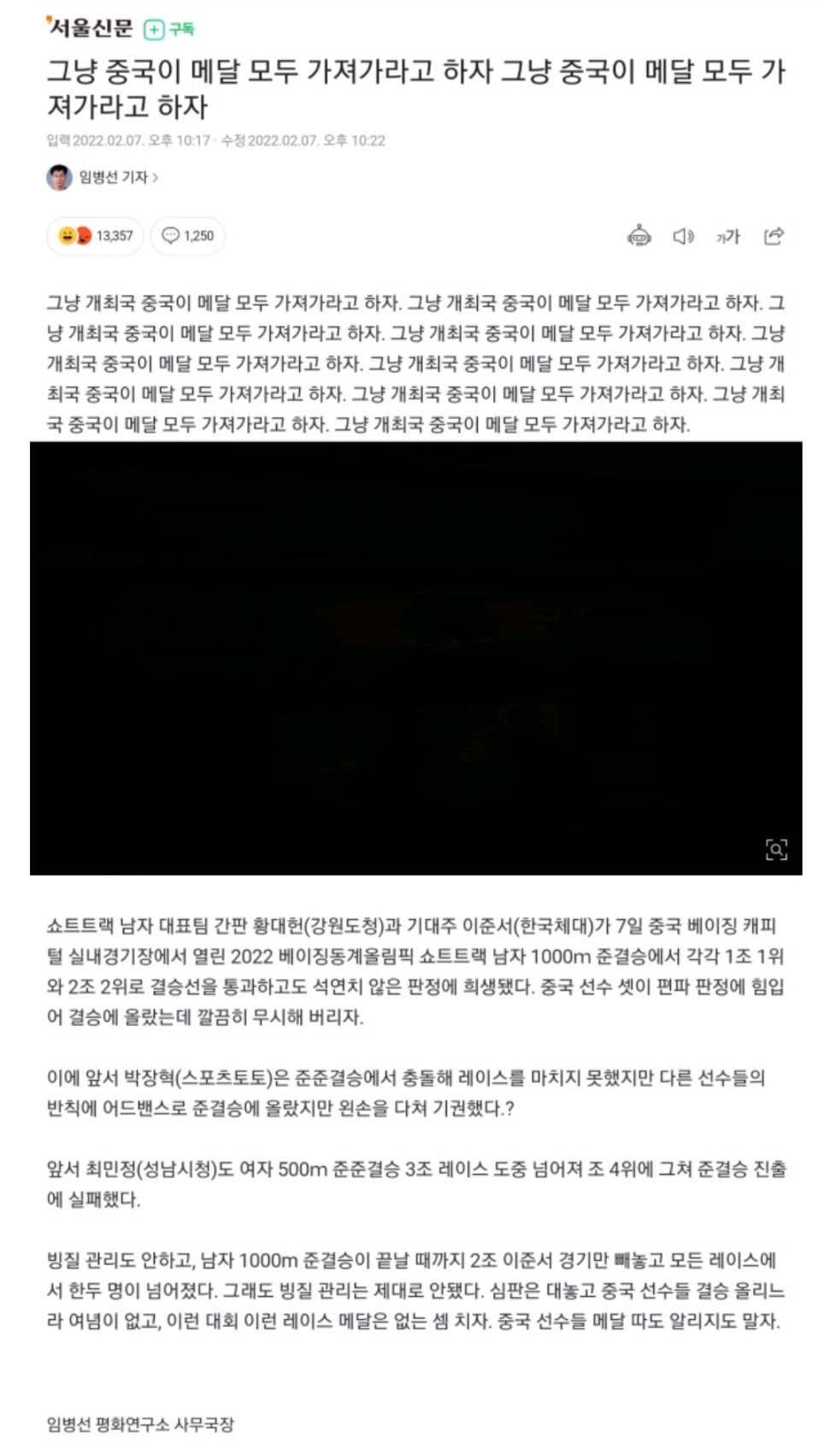 짱깨 올림픽에 분노한 기자분 본문